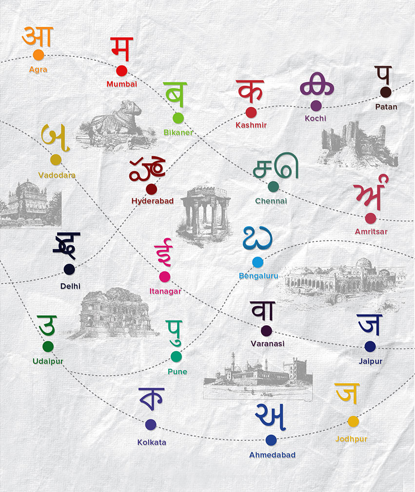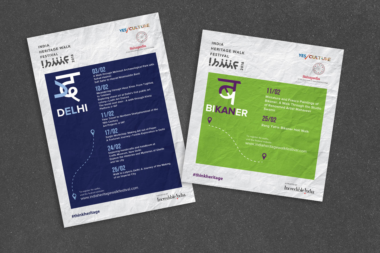 The India Heritage Walk Festival 2018 spanned over 20 cities, calling for a visual identity that celebrated diversity while maintaining cohesion. The design used bold colour blocking, regional scripts, and textured backdrops to reflect India’s layered and diverse cultural richness. Each city was uniquely represented through a colour and native-script letter, creating a system that was both local and unified. Traditional motifs, custom icons, and map-inspired layouts added movement and narrative, while deliverables, from invites to social media, carried this vibrant, accessible design language. The result was a dynamic visual story that brought India’s heritage to life across different platforms.