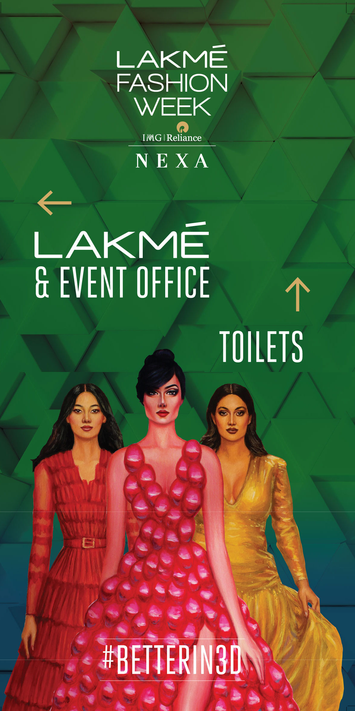 For Lakmé Fashion Week’s #BetterIn3D theme, the visual identity fused high fashion with immersive design, creating an experience that was as bold as it was refined. Sharp geometric motifs, layered 3D textures, and stylised model illustrations elevated signage into statement wayfinding. A dynamic colour palette paired with clean, modern typography ensured that every element—from invites to on-ground collateral—struck a balance between clarity and couture. Event invitations carried the narrative forward with crisp compositions, circular text treatments, and minimalist layering over tactile backgrounds, resulting in a sophisticated visual system that celebrated depth, innovation, and design-forward thinking.
