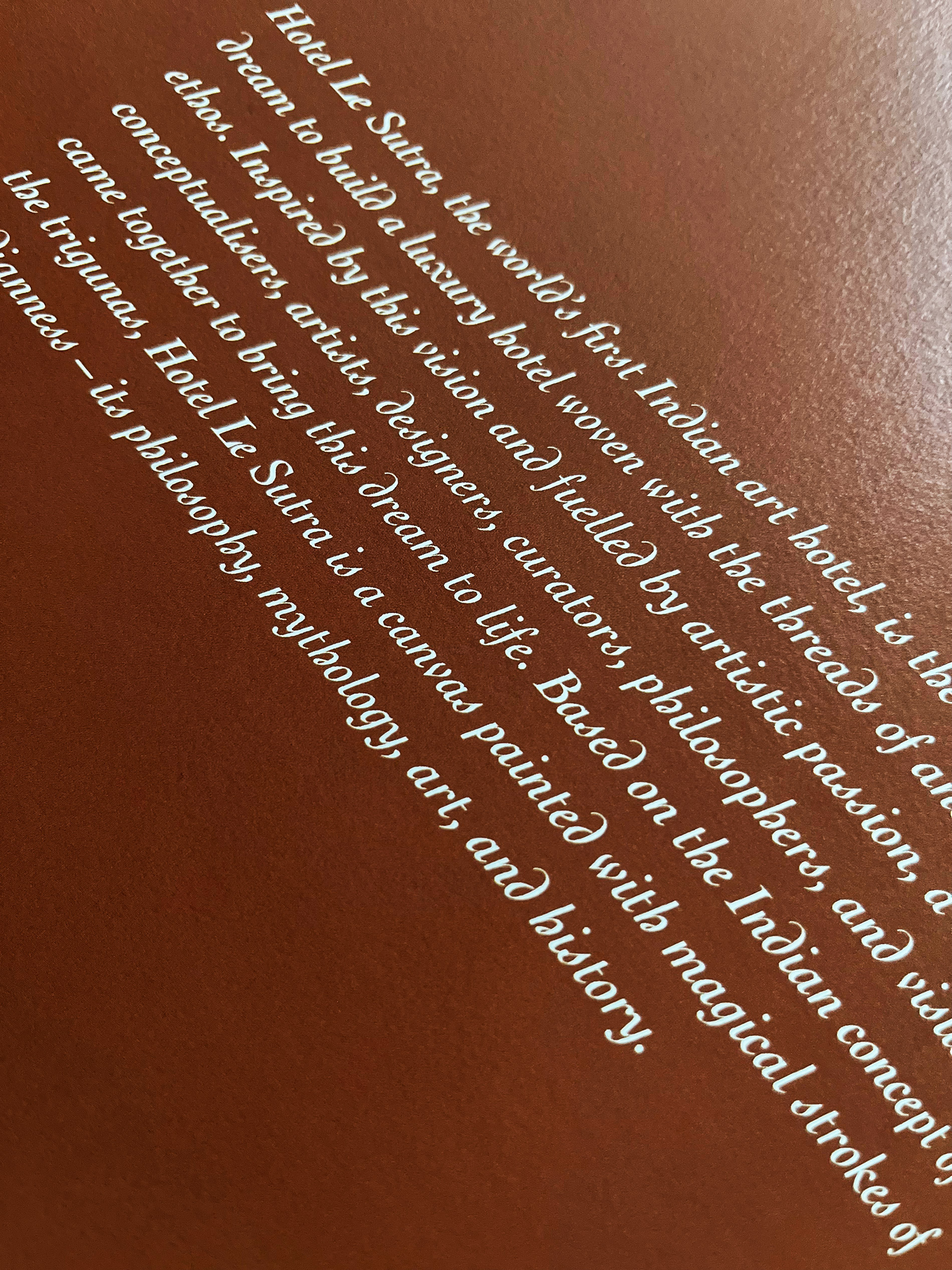 The Le Sutra coffee table book is a tactile expression of the brand’s unique vision where Indian art, philosophy, and contemporary design merge into a singular narrative. As the design consultant, I collaborated closely with the in-house designer to shape the visual direction, ensuring every layout reflected Le Sutra’s immersive, culturally rich ethos. In parallel, I authored written content for the book, weaving stories that span the brand’s pioneering Indian art hotel, its art-inspired residences, curated dining experiences, and wellness offerings. The result is a beautifully crafted brand story that doesn’t just showcase Le Sutra's history, it tells the story of how Le Sutra transforms spaces into soulful, art-driven experiences.