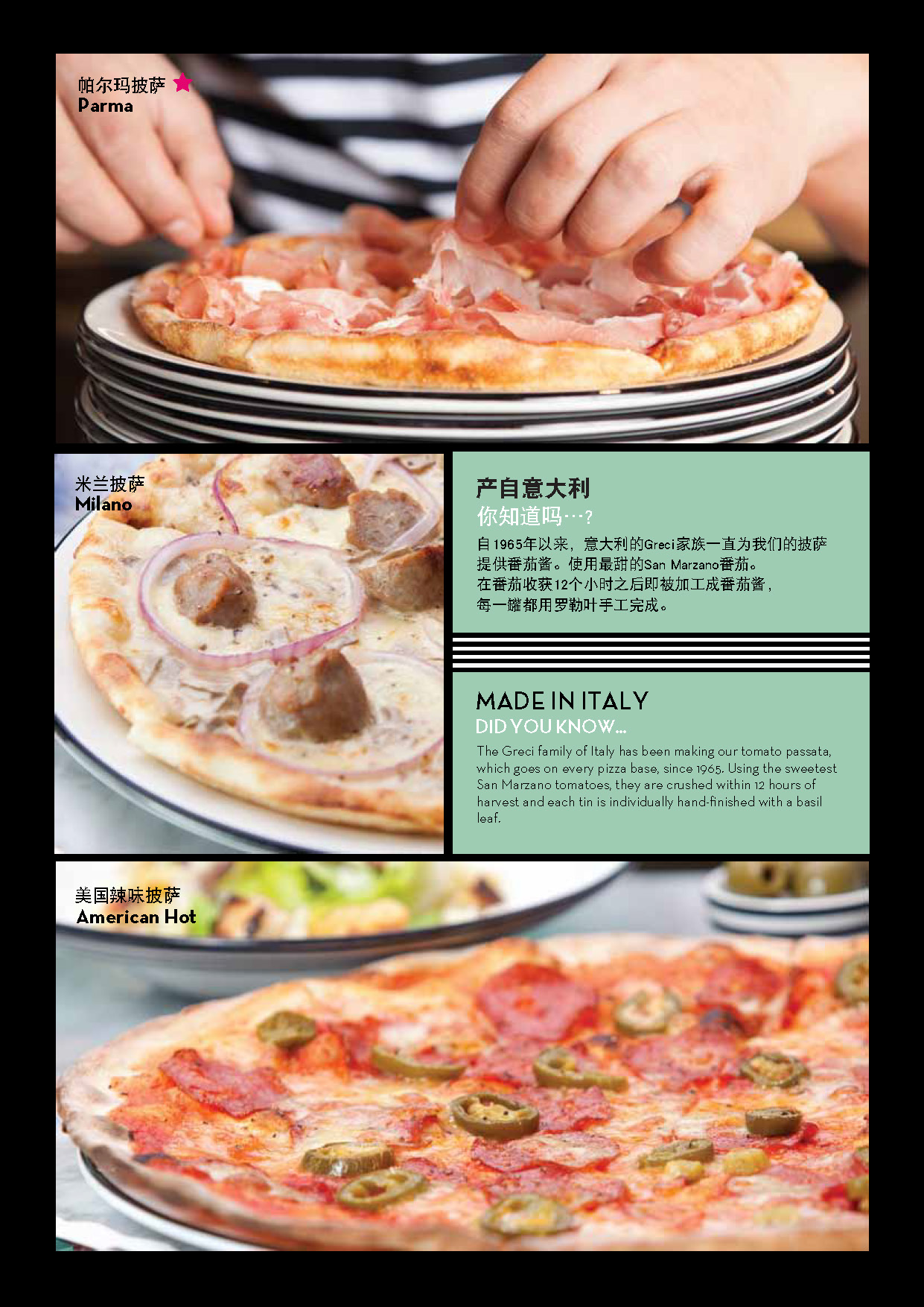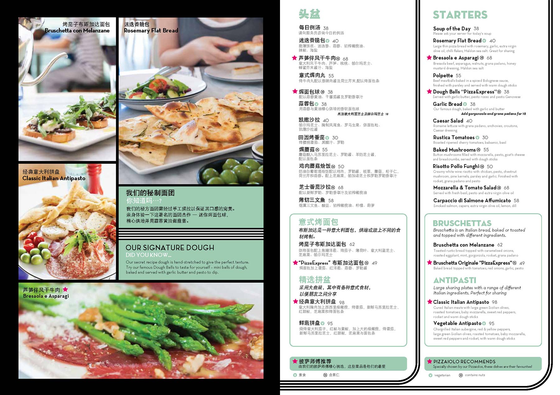 Created for the launch of the very first PizzaExpress in Beijing, this bilingual menu set the tone for the brand’s entry into the Chinese market. The design merges a contemporary graphic structure with the warmth of artisanal Italian cuisine, using a striking grid layout that balances vibrant food photography with clean, bilingual typography. Each section is thoughtfully organized in both English and Chinese, ensuring accessibility while maintaining a refined, editorial aesthetic. Signature design elements such as crisp imagery, custom icons, and fresh color blocks reinforce the brand’s values of craft, freshness, and global-local fusion. A key visual touch—the use of horizontal black-and-white stripes—serves as a recognizable PizzaExpress brand staple, subtly anchoring the layout in the company’s established identity. As a launch piece, the menu was crafted to be both functional and memorable, welcoming Beijing diners to a new dining experience that is as visually engaging as it is flavorful.