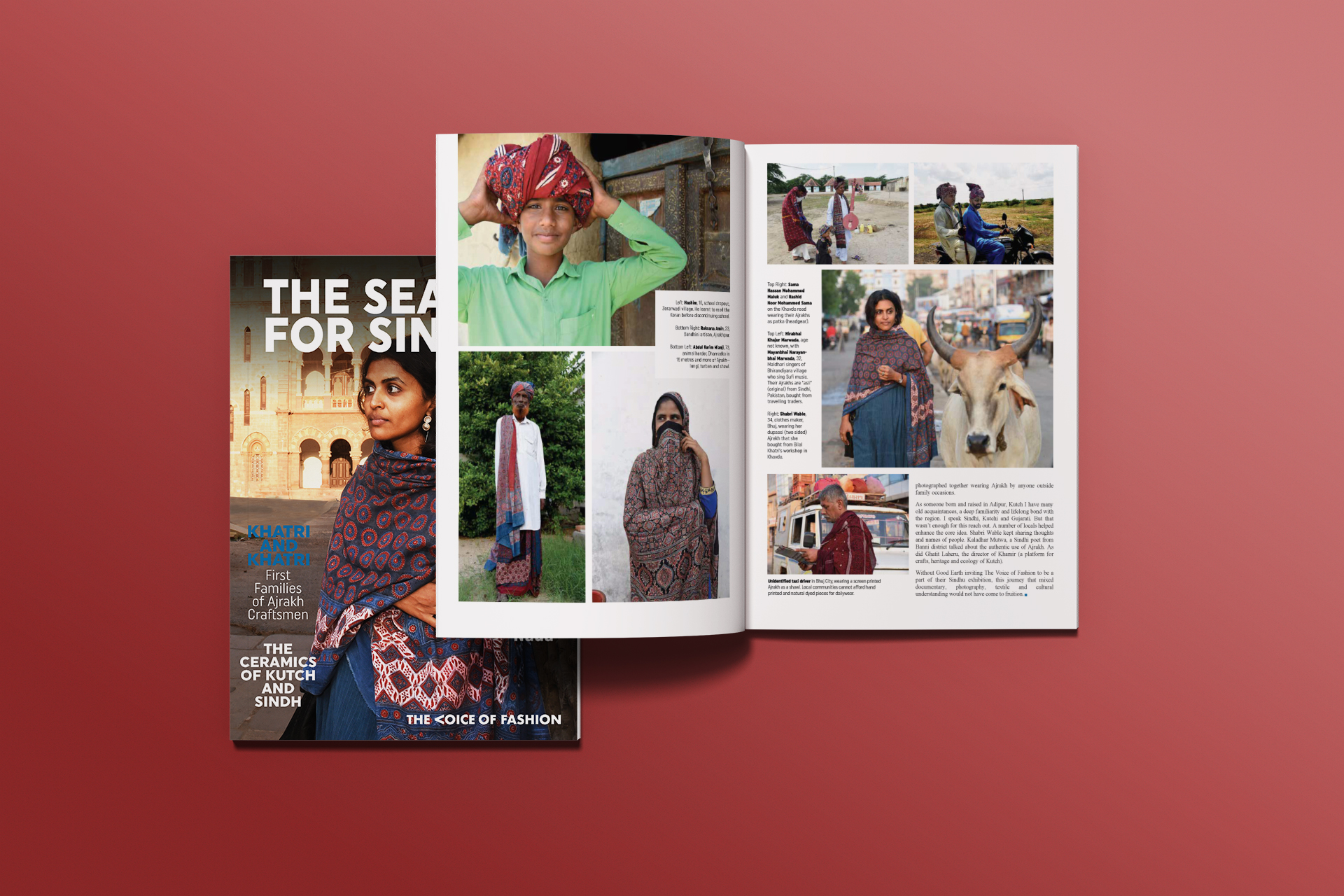 The design of The Voice of Fashion's magazine titled 'The Search for Sindhu' balances editorial clarity with cultural depth, reflecting the deep exploration of Sindh’s artisanal and aesthetic legacy. A restrained, earthy palette and clean typography allow the stories and documentary-style photography to take centre stage. The layout becomes a gentle canvas, letting stories of craft, community, and identity unfold with dignity and grace.