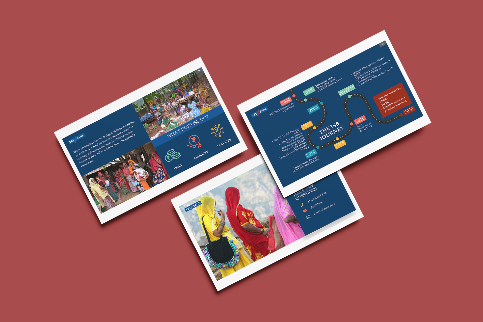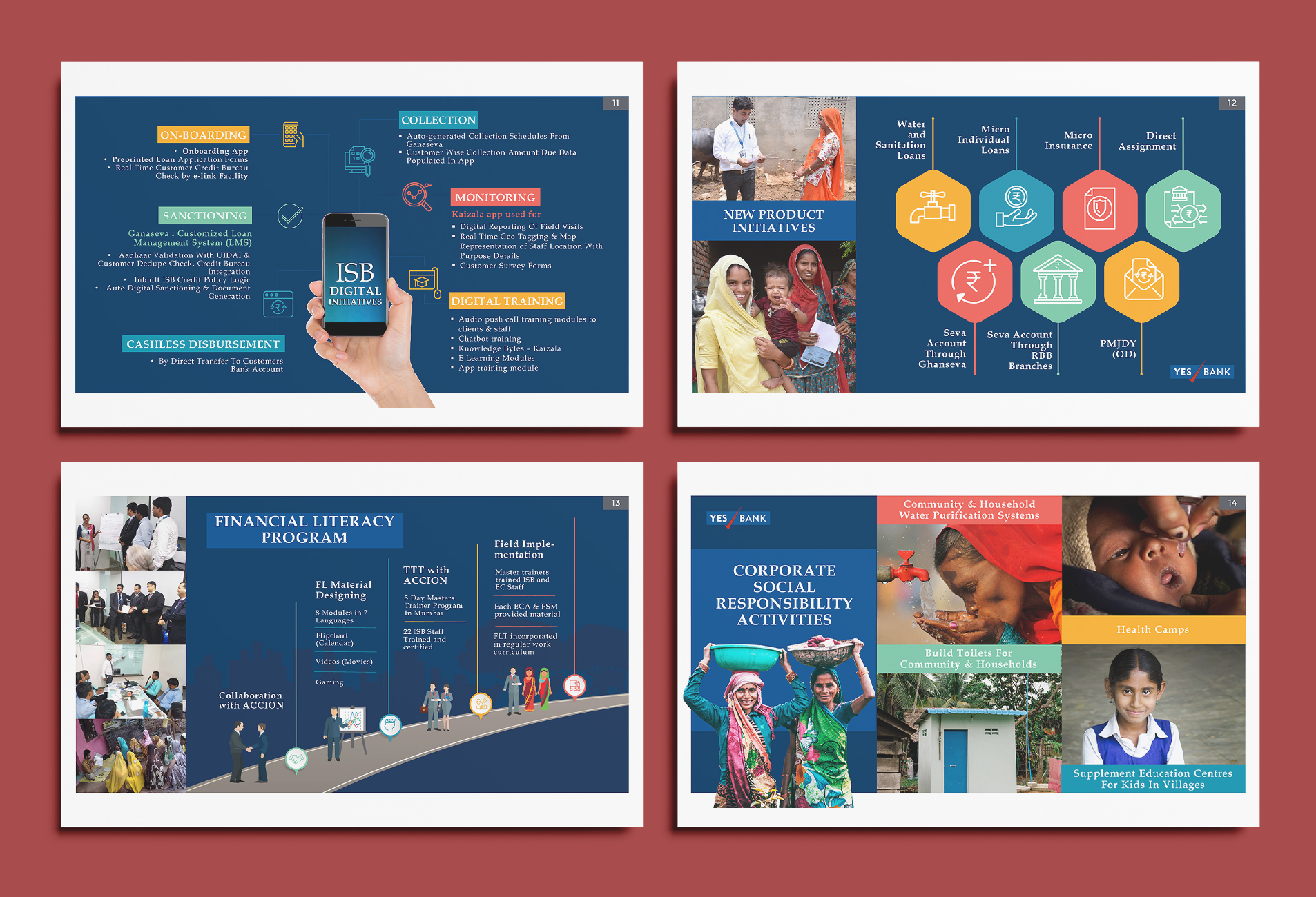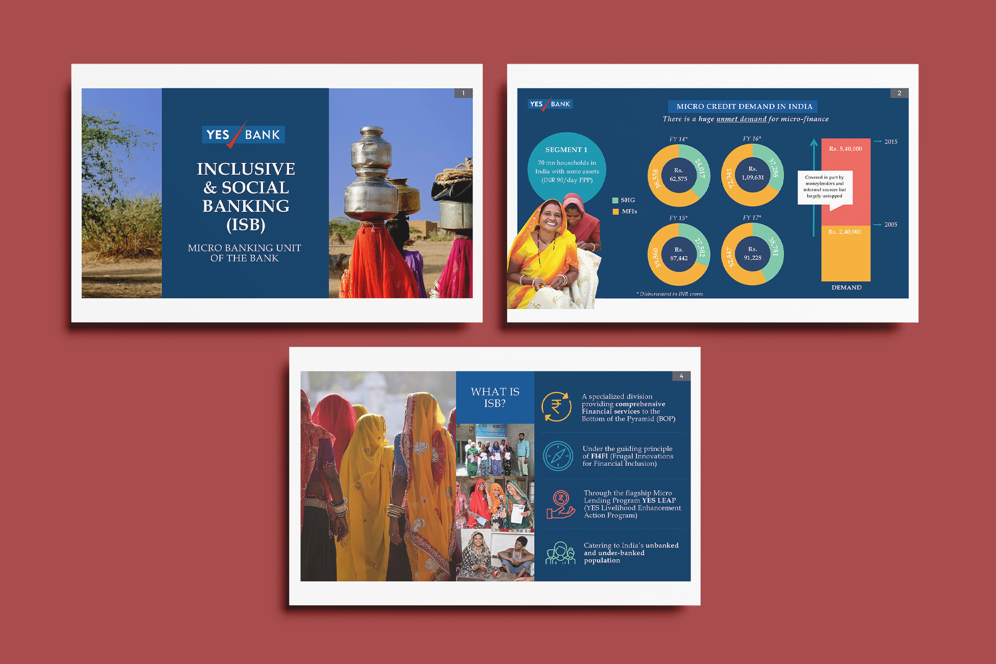 This impactful presentation for YES BANK’s Inclusive & Social Banking (ISB) unit was crafted to visually communicate the scale, purpose, and journey of its micro-banking initiatives. Designed with a focus on rural India’s vibrant spirit, the deck integrates rich infographics, real-life photography, and a structured narrative to highlight YES BANK’s commitment to financial inclusion. From unmet credit demand to grassroots empowerment through YES LEAP, the visual storytelling brings clarity, warmth, and purpose to a critical mission—banking the unbanked with dignity and innovation.