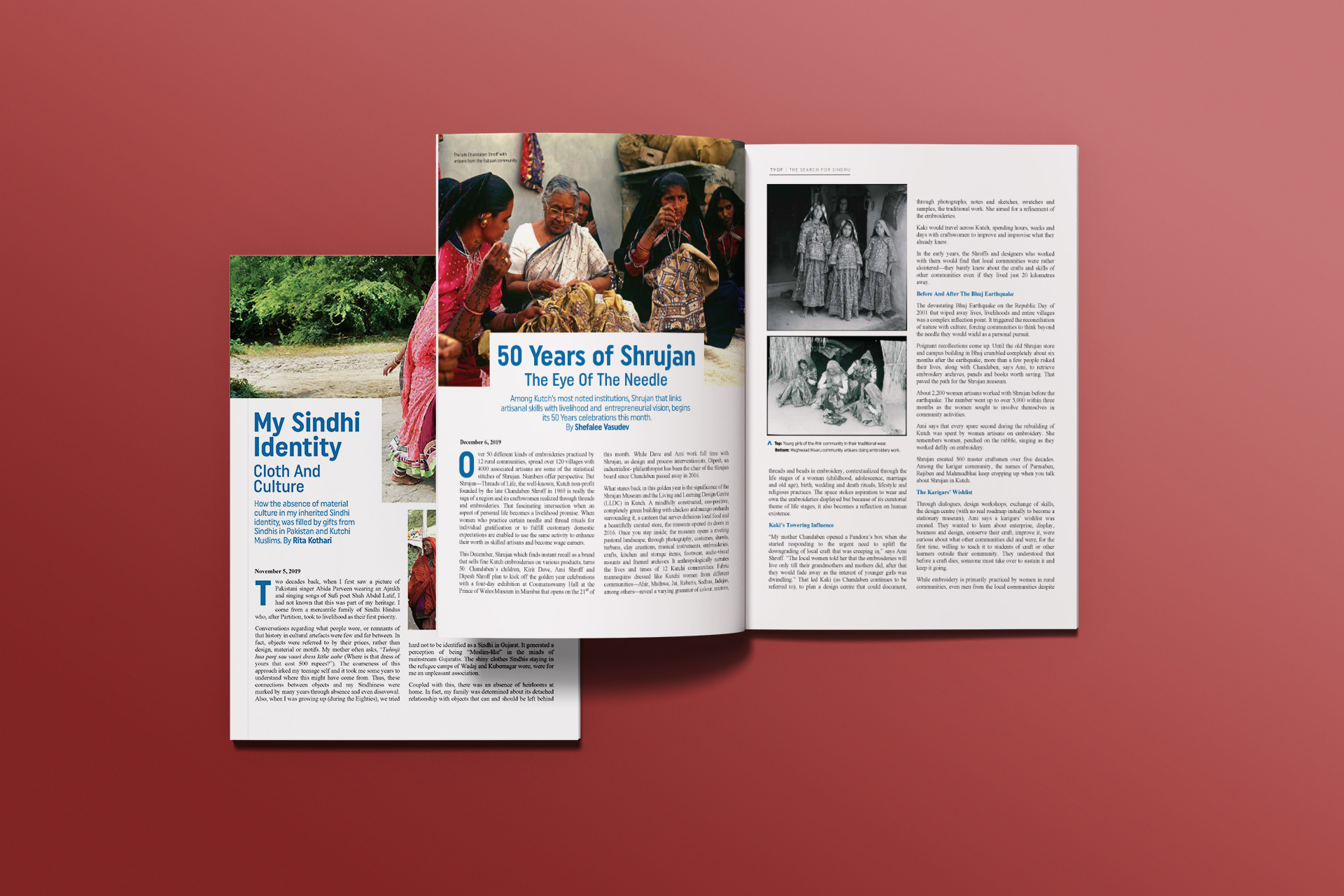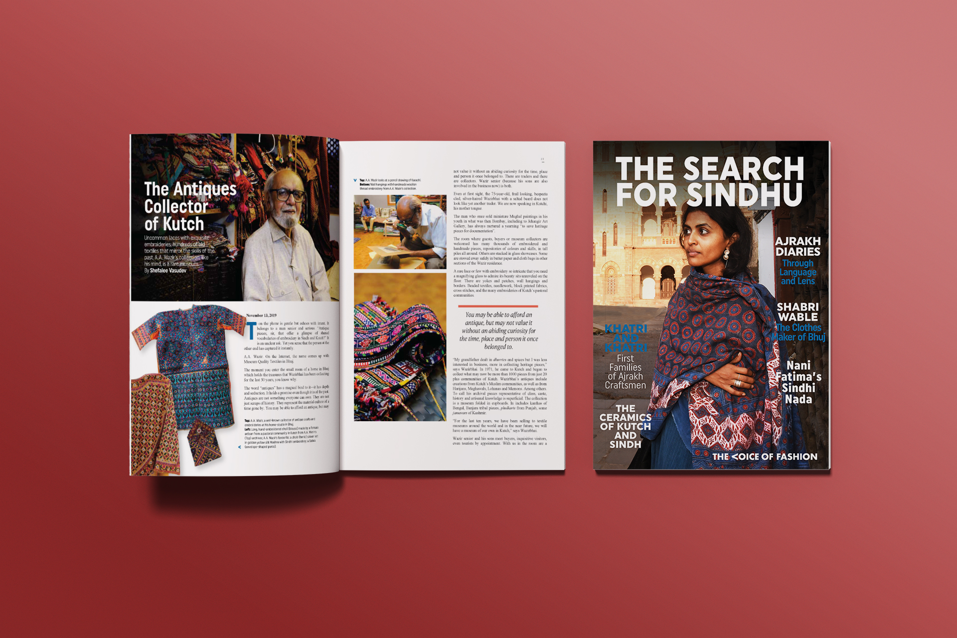 The design of The Voice of Fashion's magazine titled 'The Search for Sindhu' balances editorial clarity with cultural depth, reflecting the deep exploration of Sindh’s artisanal and aesthetic legacy. A restrained, earthy palette and clean typography allow the stories and documentary-style photography to take centre stage. The layout becomes a gentle canvas, letting stories of craft, community, and identity unfold with dignity and grace.